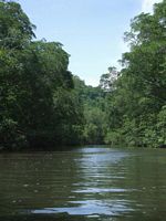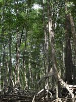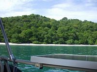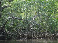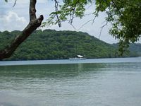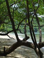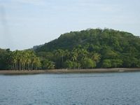 We decided to head out and around to the other side of Papagallo Penisula today, to a little bay called Bahia Huevos in Charlie´s Charts, but which doesn´t bare that name on anything else we look at. It does have some egg-looking islands along the northern arm of the bay so Huevos will do us. We had a picturesque sail along the beaches and around the King Kong Rock which all the tour yachts seem to circle constantly, and finally made our way into the little bay. There was another boat anchored there but they left within 30 minutes of us arriving so we had the place all to ourselves. We were going to go snorkelling but the water was very murky and churned up over this side of the penisula so we opted instead for a dinghy trip up a small estuary. We were pleasantly surprised. The entrance and first few hundred meters was like any other mangrove estuary but then we turned a corner to find a habitat with towering wetland trees, some over 100 feet tall. There were a few different birds but none we could catch a glimpse of, just their calls taunting us to keep cracking our necks trying to locate them in the dense canopy tops.