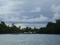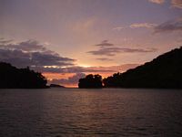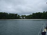 Michelle woke up at 4am and decided enough was enough letīs get going. There was a storm building and the anchor just wasnīt set well enough to ride out any kind of blow. We pulled up the anchor and negotiated our way out in the pitch black, relying totally on our trusty radar and depth sounder to inch our way out of the bay. The next island group, the Contreras, was just 18nm southeast. Again we decided to leave the canopy up and worked our way across under jib alone. We decided to anchor at the northern end of Isla Brincanco and it turned out to be a lovely bay. We hadnīt been anchored long when the Panamanian Navy paid us a visit. We thought weīd probably get fined for having stopped on route to Panama City without having checked into the country but they werenīt perturbed at all. They took a copy of our paperwork and asked how much longer would we be before we made it to Balboa and officially checked in and off they went.