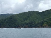 We upanchored fairly early and headed to a bay on the southwestern part of the Azuero Peninsula. Our old guidebook said that it was an almost swell free anchorage. They were seriously misguided. Itīs very open to the west and thatīs what direction the swell came from. Fortunately we faced into it for most of the night so it wasnīt too bad although it wouldnīt have needed to have been much rougher. The bay had two sandy beaches and the hills backing the anchorage have all been turned into pasture land. The cows wandered down to the trees on one of the beaches and stayed a while before ambling off back up the hillside. We were even serenaded by howler monkeys this evening. Tomorrow we are going to make the 40 mile jump around to Punta Juanico so the canopy is coming down for the first time since we arrived in Panama, almost three weeks ago.
