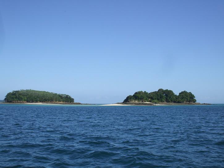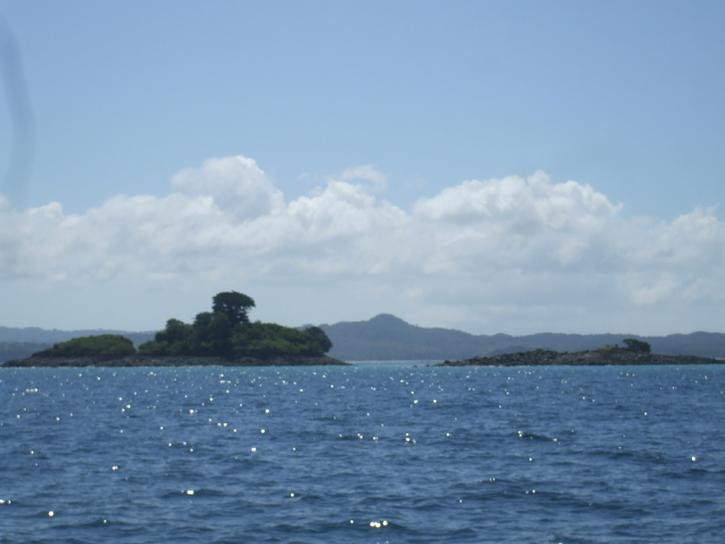 Christmas Eve. The run down the rest of Isla del Rey to the almost the bottom of the island today was very scenic. We sailed past Punta Gorda making sure to note the rocky shoal half a mile on our port side. The route took us down past Playa de San Juan, a beautiful light sandy beach glinting in the sunlight and then we cut through between Isla del Rey and Isla Santelmo. This was a bit hairy as we had Isla Santelmito and an extensive rocky reef system on our starboard side, submerged rocks off shore from Isla Santelmo on our port side, and about nine spare feet of water under the keel as we crossed the shoal. The water was crystal clear and we could easily see the bottom which consisted of boulders, boulders and a few more boulders for good measure. We were glad to get through there and back into deeper water. Nevertheless a very picturesque passage indeed.
