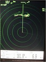 | Easter Island on the radar and our first glimpse of the island in the dawn twilight. | |