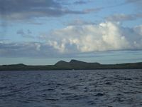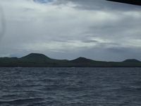We were pretty excited during last nightīs watch, waiting with baited breath for Easter Island to appear on the radar. We have a range of 24 miles and right at the end of Michelleīs shift, just as Robin was taking over she says, thereīs a rain squall just on the edge of the radar. Then she goes to bed. An hour later Robin realized he was looking at Easter Island! By the time Michelle woke up, the island was clearly portrayed on the Radar and as soon as it was light Michelle was outside squealing with glee. The two mountains Maunga Terevaka (507 meters) and Maunga Pukatikei (400 meters) made for a dramatic skyline in the dawn twilight.