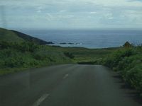 | West side of the island and approaching the township of Hanga Roa | ||