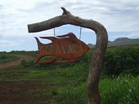 A few meters further along the northern coast we stopped to take a peak at some petroglyphs at Papa Vaka. An information board informed us that this was a ceremonial site where they carved these petroglyphs which showed the ancient concern about the sea and the control of its resources. There are a number of symbolic figures closely associated with the sea such as fishhooks, canoes and various marine creatures. Robin, the ever ready quip artist, offered the alternative perspective that it was probably a site where kids were sent to entertain themselves by carving pictures in the molten rocks. Whatever the case, some of the petroglyphs were fairly elaborate affairs, others you could barely make out, they were so eroded and if it werenīt for the information panels portraying what it was supposed to be you would have been hard pressed to make anything of it at all.