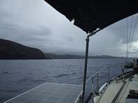 We have had a pretty rough 24 hours with lots of heavy rain, lots of squalls, 20 to 25 knots of wind and weīve spent the last 12 hours trying to slow Warrior down as we knew we wouldnīt make it in before dark to negotiate the coral reef. Ever tried to slow down a racehorse? We are moving along under just a tripled reefed mainsail which is a very small scrap of cloth on Warriorīs rigging and sheīs still doing 5.0 knots. Where was this wind when we were headed to Pitcairn lol. Itīs either a feast or a famine.