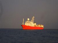 Well yesterday was literally the calm before the storm. Instead of playing guitars and reading books we should have been sleeping to build up some reserves! It has been a tiring 24 hours. We had rain squalls start at 6pm (24:00 UTC) last night and they continued on through to the end of Michelleīs watch at 3am in the morning. Some of the winds hit 30knots, the seas churned up and rough. There wasnīt much rest. This morning around 7am we had a surprise encounter with Geo Searcher 6, a research vessel conducting seismic readings. He was towing a 5 mile long cable behind the boat which made getting round him exceedingly difficult and in the end we had to cross his bow, a manoeuver we never want to have to repeat. The captain of the vessel congratulated us on a job well done then on comes an aussie accent. There was a guy from Australia on the research vessel and he wanted to chat. Isnīt it amazing where you find us Aussies.