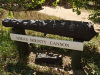 So armed with this info we set off to discover this home of the renegades decendants. All along the way Brenda would stop to drop something off to one of the residents or collect something. First stop was to Mr Brownīs place (not sure of the lineage of the Brown name but he was born on the island) and there outside his front fence was one of the canons of the bounty. There are apparently another one or two currently in Australia being restored.
