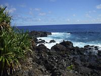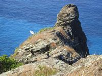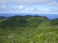 The wildlife on Pitcairn is unusual. Because of its isolation, no mammals apart from rats and goats which were brought by people made it here. There are however an endemic bird, plants, lizards, snails and crabs. The Pitcairn Warbler is their very own species of sparrow. There are 11 species of plant endemic to Pitcairn although most endemics are under serious threat nowadays. Thatch, Rata and Mahame are found only in a few spots throughout the island. The yellow Fatu which was presumed extinct was found near Tedside in 2003. This newly discovered plant was subsequently destroyed by a landslide caused by goats in 2004 however cuttings had been taken and those cuttings are surviving nicely under much care. Only 11 Red Berry plants survive on Pitcairn and itīs a wonder there is that many when goats tend to destroy most plantlife. Arlihau a pretty shrub with a daisy type yellow flower is also struggling to remain on planet earth. All these plants are only found on Pitcairn and nowadays the locals are aware of the importance of sustaining these precious species. Lantana, Lillies and the common bindy are also serious threats to these native plants.