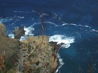 We continued on around the island, stopping at various outlooks to take in the stunning vista of the exceptionally rugged shoreline. There is not a beach anywhere in sight on Pitcairn, testament to the constant pounding it receives from ocean swell. The piece de resistance for us was the natural rock pool just around from St. Paulīs Point. We are so hoping to be able to snorkel down in there if the weather holds. The entire island has the most amazing place names although some have been changed. Down Rope is an anchorage on the southside of the island, the only access being.. a rope. Others spots have names like Where Dan Fall, Johnny Fall, Tom Off, and our all time favorite Oh Dear. Looking at the cliffs itīs easy to see how one could fall. Mostly people fell collecting birdīs eggs, chasing goats or simply fishing. Mmm cliff fishing... ok!