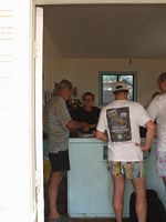 It is Michelleīs birthday today and she began the day as spoilt as ever with breakfast in bed! We lazed around reading books until midday as we knew a charter sailboat was arriving around that time to drop off some visitors to the island and they would require the launch. We figured since the swell had worsened a little we would also make use of the launch today to get ashore. Brenda and Mike and Shawn and a few others were on the dock to greet the two visitors, Patrick and Mark, who hailed from Belgium, and had been planning this trip for over 20 years. Last year they attempted to get to Pitcairn and the yacht they chartered had an accident just outside of Tahiti and didnīt make it so they came back for round two this year. Very nice couple of guys.