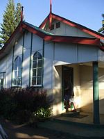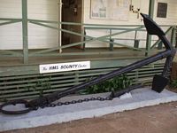 Also located in the village square beside the post office was the Bounty Anchor set before the town hall, and the Seventh Day Adventist Church. This is the only church on the island. There were aslo a couple of shipīs bells which had been donated to the island hanging up here.
